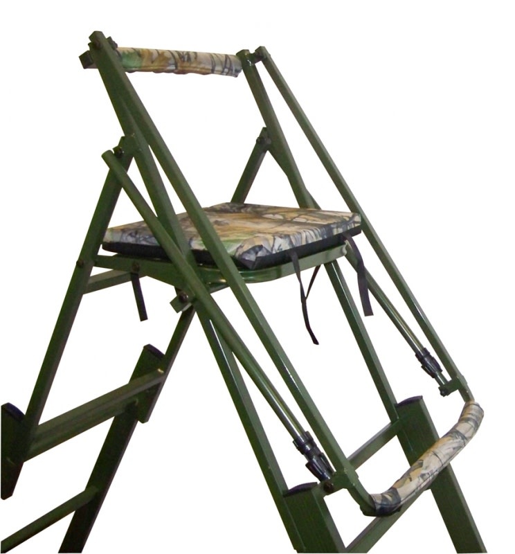 Der Ansitzbock zeichnet sich durch sein geringes Gewicht aus und ist somit leicht zu transportieren und schnell aufzubauen. Die gepolsterte Sitzauflage in Tarnoptik/Camo sorgt für hohen Komfort während des Ansitzes.