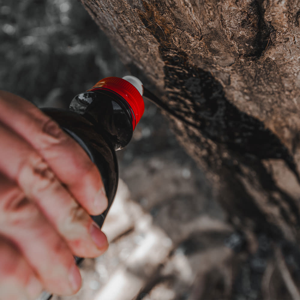Die flüssige Konsistenz sorgt dafür, dass der Black Fire Tar tief in die Rinde einzieht und seinen intensiven Duft über eine lange Zeit verteilt.