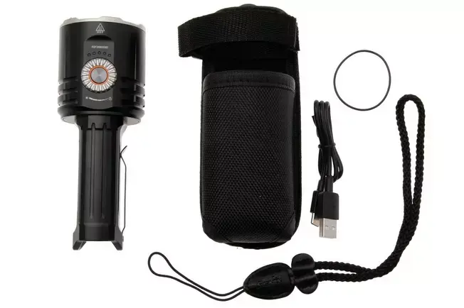 Verder beschikt de LR35R PRO over een 5000-lumen superheldere schijnwerper, een 8000-lumen superbrede schijnwerper, een 260-lumen rood licht en een krachtig UV-licht. De toggle- en elektronische schakelaars zijn eenvoudig te bedienen en zorgen voor een snelle vergrendeling en soepele aanpassing van de helderheid. De LR35R PRO is aangedreven door twee 6000mAh 21700 batterijen voor een brandduur tot 135 uur per oplaadbeurt. De zaklamp ook dienen als powerbank om andere apparaten zoals smartphones op te laden. De intelligente functie voor het terugschakelen van de helderheid voorkomt gevaar door hoge temperaturen. Met drie keramische breektips in de roestvrijstalen slagring kun je ruiten breken in een handomdraai. Hij is gebouwd om te weerstaan, heeft een IP68-classificatie en is getest tot een val van 1 meter, zodat je vol vertrouwen kunt werken in moeilijke omstandigheden zoals zoek- en reddingsmissies en buitenavonturen.