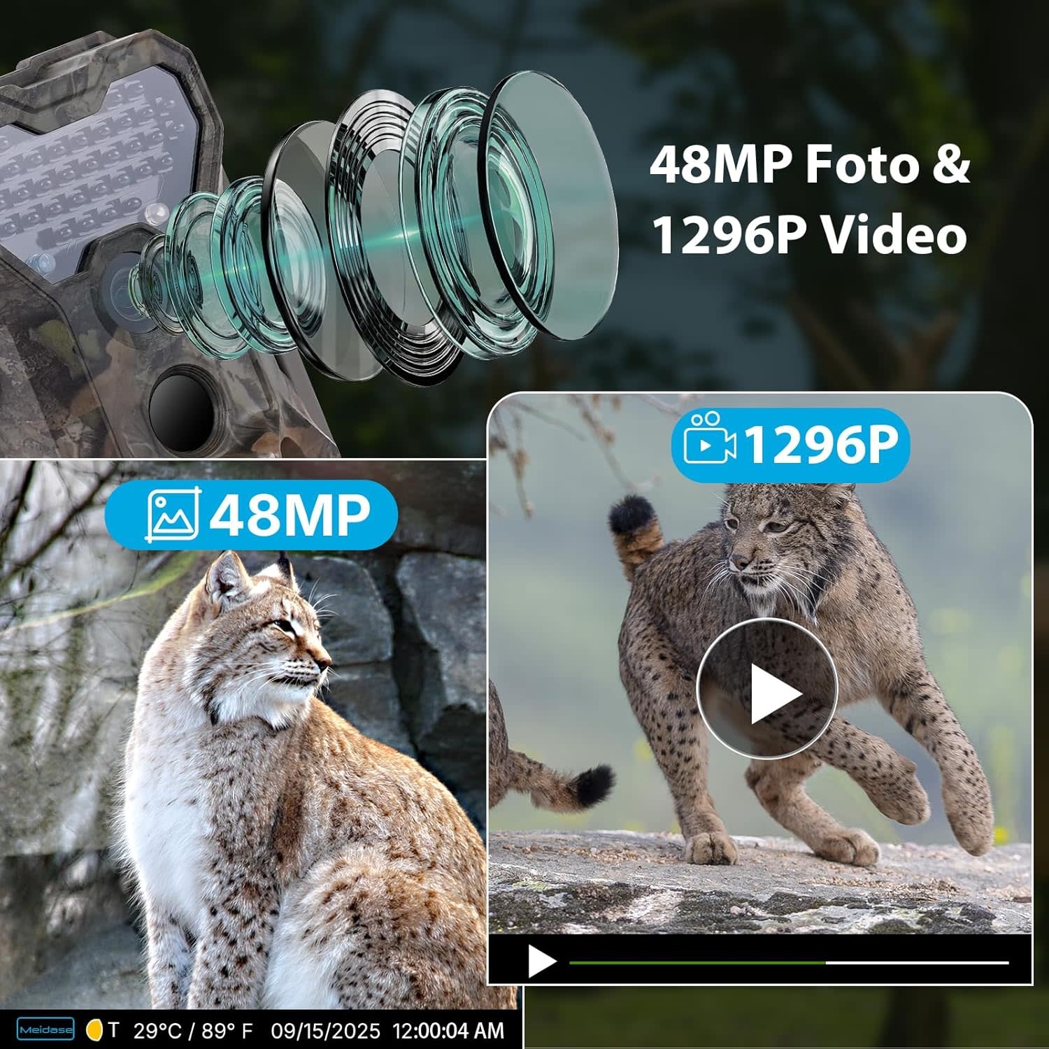 De meest geavanceerde Meidase camera S970 Pro 4G LTE, 48 MP 1296P, met livestreamingfunctie, nachtzicht, bewegingsdetectie in 0,1 seconde, waterdicht, app-transmissie, met oplaadbare batterij van 7800 mAh en GPS-tracking. Lees meer