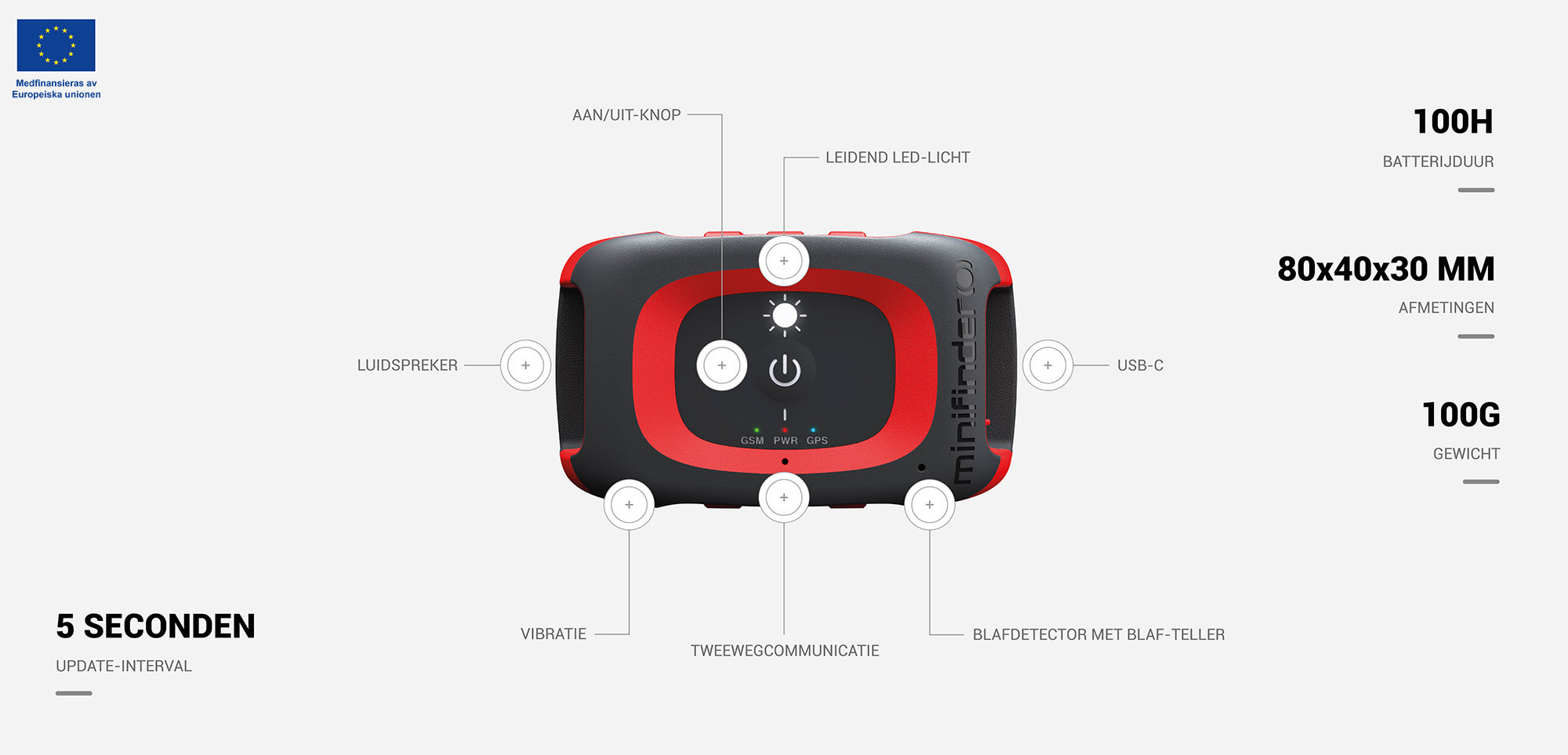 MiniFinder Rex is een GPS-gebaseerde hondentracker met onbeperkt bereik en realtime tracking. Met zijn robuuste ontwerp en zorgvuldig geselecteerde materialen is Rex een degelijke en volledig waterdichte tracker die bestand is tegen alle weersomstandigheden. Met een batterijduur tot 100 uur bij actief gebruik hoef je je geen zorgen te maken over de volgende oplaadbeurt.